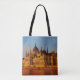 Beautiful Hungarian Parliament building is featured at two different times of day.