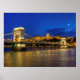 Chain Bridge, Royal Palace and Danube river in Budapest by night with full moon, Hungary, HDR