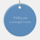 Lightweight, smooth, pure white ornament with nice sheen. Perfect size to be seen from across the room ... and to attract closer inspection! Price was great for ordering enough for the whole family! Clear, bold black design just as requested. Matches the order exactly. Just so nice!