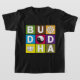 BUDDHA is spelled out in this colorful and original Buddha design in multiple colors blocks! Buddha text with three Buddhism symbols, the Dharma Wheel, Yin Yang symbol and the Lotus Flower. Wonderful Buddhism shirts and gifts for Buddhists!