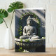 A greeting card with a front cover of a Buddha fountain with ivy and pretty lighting. Inside is a Buddha quote.