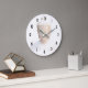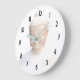 A clock with a tranquil and peaceful image of a statue of the Buddha all in white. Symbol of purity and enlightenment.