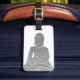 This luggage tag features an image of a Buddha statue, with customizable text on the back, and customizable background color.