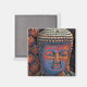 Colorful Buddha with patterned wallpaper. Mixed media digital painting by Sheryl Karas.