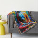 A quality printed throw has its advantages. This is a much finer weave throw than its loopier cousins, and though lighter, it is worth the investment for custom room accessorizing. The back is much prettier than the typical brown, and the fringe on the long sides very vivid, the selvage nicely done. Before photographing, I washed the throw in cold water, delicate, with a thicker woven throw the same size. On tumble dry low, this throw was dry in half the time as the other. This is a very practical quality if you use throws for furniture covers or to wrap up in frequently. The sleekness of the fabric makes it a great layer for accenting or protecting without the feeling of sitting on too much stuff. Perfect for napping or when you feel a light chill coming on. The color printing is beautiful and on this fabric, matched the design and color of my Photoshop image. This is an advantage for blending room fabrics and colors. The fringe on the short sides prints the colors from the design image and therefore varies from the side fringe. I streaked a white fractal line through the plaid pattern to give the illusion of weaving. This printed as crisp as an illusory thread, and put some white in the short side fringe, showing another advantage of print vs loomed- for artistic purposes, line lines, detail, and color integrity can be planned and preserved. My loomed throws have color limitations and more of a needlepoint texture. Print throws reproduce an exact image. The throw felt a little stiff straight out of the package, but this went away in the first delicate wash. Of course I searched the wash water for ink or bleeding and there was none.