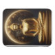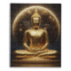 A serene golden Buddha figure sits in an elegant lotus position, radiating tranquility and wisdom. Behind the statue, a luminous moon casts a soft glow, illuminating the surroundings and enhancing the peaceful ambiance of the spiritual moment.