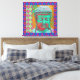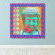 Buddha Pop with Patchwork Borders in Blue and Pink Canvas Print