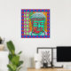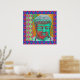 Buddha Pop with Patchwork Borders in Blue and Pink Poster