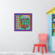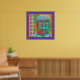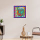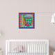 Brightly colored Buddha in pop art colors with multiple patterned borders.