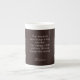 This mug is imprinted with a Bach Solos Suite for Cello. It was purchased as a thank you gift for a professional cellist friend who often performs this work. The cup is made of a high-grade ceramic and is fairly light. The walls are not too thick and it is a small to medium size. It's well finished, has a high-gloss glaze, and looks very elegant. The Bach Solo Suite score on the example I received was clear and had high contrast. Even though the staffs were small, the music was easy to read. The cellist who received this cup immediately knew what the music was as soon as she set eyes on it.