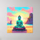 A tranquil Buddha statue sits gracefully on a pastel-hued beach, surrounded by the calming lofi aesthetic of soft waves and dreamy skies. This artwork radiates serenity, inviting peace and mindfulness in every glance