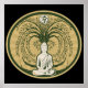 This wonderful Buddhist design shows Siddhartha Gautama sitting under the Bodhi where he attained enlightenment and became the Buddha. Wide oval shape in green and tan colors with a Om symbol at the top of the tree. Original and peaceful Buddha gift!