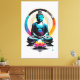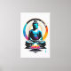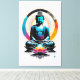 A Buddha statue is sitting amidst a colourful Zen circle, with a lotus flower.