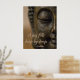 Nice photo of Buddha bust with his famous quote: A JUG FILLS DROP BY DROP. Brown and beige colors with script lettering.