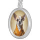 I chose gold plated so that the metal would not react with my skin oils and perspiration. But, I changed the necklace from the gold plated one to a sterling silver. My skin cells will tarnish the silver. But it will not look as bad if some portion of the gold plated necklace somehow became compromised. Zazzle did a find job turning the picture into a pendant for me. As you can see, the colors and the printing of the final product, match the preview. The picture I took is not very clear. But I am pleased with the product I received.