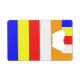 The six vertical bands of the flag represent the six colors of the aura which Buddhists believe emanated from the body of the Buddha when he attained Enlightenment: