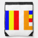 The six vertical bands of the flag represent the six colors of the aura which Buddhists believe emanated from the body of the Buddha when he attained Enlightenment: