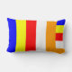 The six vertical bands of the flag represent the six colors of the aura which Buddhists believe emanated from the body of the Buddha when he attained Enlightenment: