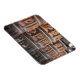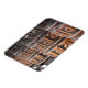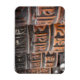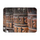 Rectangular photo magnet with brass buddhist prayer wheels closeup in the temple Swayambunath in Kathmandu, Nepal.