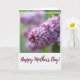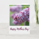 Designed with a close-up view of a flowering cluster framed by a white border, this card focuses on a spray of tiny buds and small star-shaped blooms in purplish-pink tones. On the left, tightly packed buds glow in deeper magenta, while the right side opens into lighter, pastel blossoms that seem to lean toward each other like close friends sharing a quiet moment ❤️. Soft, diffused light gives the petals a gentle sheen and keeps the overall look calm and tender. Behind the flowers, the background fades into a smooth blur of soft greens and muted lilac, making the blooms feel even more intimate and close. The contrast between closed buds and fully opened flowers creates a sense of growing closeness, like a relationship unfolding one small step at a time 🌼. Near the bottom, a short message appears in flowing cursive-style lettering, set in a darker tone that stands out against the pale space. The text sits below the floral cluster, while the blossoms remain sharply detailed against the softly blurred backdrop. Share Mother's Day sentiments with love and care, and let the white-framed floral cluster fade into soft green and lilac blur behind the purplish-pink blooms.