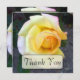 Custom two-sided thankyou cards. Front has customizable "Thank You". Back has template to enter your thank you message - or delete to hand-write your thank you. Bright yellow rose bud with pink-tipped petals just beginning to bloom. Floral rose photograpy, taken August 2009 in Corralitos, California.