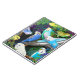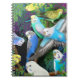 Original fine art design of colorful Budgerigars or Budgies in Maidenhair ferns by artist Carolyn McFann printed on a quality notebook for parrot fans.