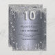 Budget 10th birthday silver glitter invitation