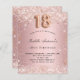 For an elegant 18th birthday party. A blush pink gradient background. Decorated with faux glitter dust. Personalize and add a name and party details. The name is written with a hand lettered style script. Number 18 is written with rose gold colored balloon style font.