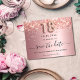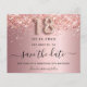A girly and trendy Save the Date card for a 18th birthday party. Blush pink gradient background decorated with rose faux glitter dust. Personalize and add a date and name/text. The text: Save the Date is written with a large trendy hand lettered style script with swashes. Number 18 with a balloon style font.