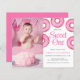 Invite family and friends to your baby girl's first birthday party with this cute budget Invitation. It is decorated with pink watercolor donuts and says "She's a Sweet One" in stylish script typography.