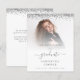 A value for money BUDGET alternative on a smaller size 4.5 x 5.6” semi-gloss 110lbs weight, which is of similar thickness to a postcard (however is not suitable to use as a postcard.). PLEASE NOTE there is ONE invite per sheet. Budget 2022 Graduation Photo Silver Glitter Announcement. Elegant faux glitter borders are at the top on both sides. Graduate is in a stylish script with swashes. Easily personalise the text to your own requirements including on the reverse, and replace the sample image with your own.