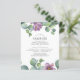 A modern and elegant class of 2022 graduation party invitation featuring botanical eucalyptus greenery succulent in green and purple watercolor. This trendy design is perfect for announcing your grad party and inviting your guests.
