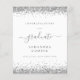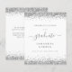 Budget 2024 Graduation Silver Glitter Announcement. A budget price SMALLER 4.5” x 5.6” alternative. Available in a SEMI GLOSS 110 lb CARD STOCK which is the default option (recommended for invitations, similar to the thickness of a postcard), OR a SATIN FINISH 80 lb THINNER PAPER STOCK (ideal for enclosures). Trendy faux glitter borders are at the top and bottom on the both sides. Graduate is in an elegant script with swashes. Easily personalise the text to your own requirements includingo on the reverse.