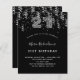 A modern, stylish and glamorous invitation for a 21st birthday party. A black background, decorated with silver confetti. The name is written with a modern hand lettered style script. Personalize and add your party details. Number 21 is written with a trendy balloon style font, leopard pattern.