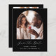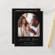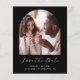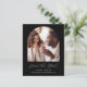 This simple, minimalist Save the Date card features a boho photo arch above the words "Save the Date" in elegant white handwriting script, followed by the couple's names, wedding date and city in sans serif font on a black background. Add a second, horizontal photo and a more detailed message with additional information on the reverse.
