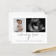 PLEASE NOTE : There are two paper options to choose from for this size (4.5 x 5.6”) in the Budget range. For this product, I would recommend the semi-gloss which is a 110 gsm card stock, similar in thickness to a postcard. The Satin option is a much thinner paper 80gsm. The default is set to semi-gloss. PLEASE NOTE there is ONE per sheet. *** Budget Minimalist 2 Photos Adventure Begins Pregnancy Announcement. Simply replace the two sample photos with your own and personalise with your tagline at the bottom. Coming Soon is in a stylish set script.
