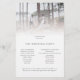 Budget 2 Photos Overlay Script Wedding Program. A LARGER size 5.5” x 8.5” at a budget price Modern minimalist style with your photo to the top edge behind a graduated tint layer with the text partially overlaid on top of your image at the bottom. Choose a different photo for the other side. The main header is in a stylish set script and the rest of the text you can easily personalise.