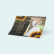 Elegant chic summer or fall wedding stylish BUDGET affordable thank you PAPER FLYER template on dark brown barn wood featuring beautiful sunflowers bouquets, strings or twinkle lights, and a chic faux gold calligraphy script. ++++++++++++++ Easy to personalize with your details and two photos on front and back! +++++++++++ Suitable for elegant summer or autumn fall rustic country outdoor backyard or barn weddings. ++++++++++++++++++++++++ PLEASE READ THIS BEFORE PURCHASING! This is a budget affordable card printed on a FLYER. ++++ Please note that BUDGET PAPER IS THIN - You can upgrade to have this card printed on cardstock ++++ ENVELOPES NOT INCLUDED. +++ Double-check all the information and spelling of your text because you will receive exactly what you see - no one else will check anything before printing. ++++ This card is designed for size 4.5" x 5.6". In the case you choose another size of the card and text goes outside page, everything needs to be fixed before adding the product to cart. Please ask Live Design Service for help.