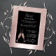On a background of blush pink metallic foil, our elegant 30th Birthday party invitation features a feminine blush glitter ombre overlay with bubbling champagne glasses toasting the 30th birthday honoree. In a black frame with a blush foil border, you'll find example text that you can easily revise on the personalization template. The back of this Budget milestone 30th birthday party invitation displays the unique ombre glitter design as well.