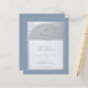 A modern birthday invitation. On a dusty blue rectangular background, it has a faux silver foil arch that has inside dusty blue text on white background. The words Birthday Party are written in an elegant calligraphic script; the first line is arched text.