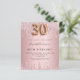 A modern, stylish and glamorous invitation for a 30th birthday party. A dusty rose, pink faux metallic looking background with faux glitter drip, paint dripping look. The name is written with a modern dark rose gold colored hand lettered style script. Personalize and add your party details. Number 30 is written with a balloon style font, script.