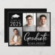 Modern black budget-friendly graduation announcement featuring 3 photos and "Graduate" in a bold contemporary white script. Add the grad's name, class year and school or university in simple white typography.