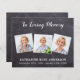 Modern Sympathy 3 Photo Funeral Thank You Cards. These sympathy funeral cards feature a unique photo collage for 3 of your favorite photos, name and dates, on a rustic chalkboard design. Personalize back with your message of thanks. These In Loving Memory sympathy thank you cards are perfect for funeral thank you notes, memorial service, and celebration of life. COPYRIGHT © 2020 Judy Burrows, Black Dog Art - All Rights Reserved. Budget 3 Photo Funeral Thank You Sympathy