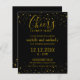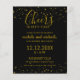 Ruby Anniversary invitation with gold glitter confetti and cheer to 40 years typography on a black background. Personalize the black and gold invitations with details.