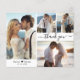 Budget, Minimalist Elegant Modern Script 4 Photo Collage Wedding Thank You personalized affordable low budget flyer. Stylish wedding thank you paper template featuring four (4) photo on the front and one photo on the back. With the text "Thank you" in a swirly hand lettered typography script font with swash in black on white background. Little love heart between the names. At the backing one horizontal photo and your thank you message template. ***PLEASE NOTE! *** BUDGET PAPER/FLYER IS PAPER THIN. NO ENVELOPES INCLUDED.*** UPGRADE THE PAPER FOR A THICKER PAPER. ***