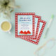 It is decorated with watercolor watermelons and a blue sky on a red and white buffalo check background.