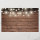 A budget 50th wedding anniversary invitation featuring string lights and delicate golden love hearts confetti on a rustic wood background. Personalize with your favorite wedding photo and your special 50th golden wedding anniversary celebration details in chic typography. Designed by Thisisnotme©