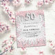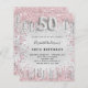 A modern, stylish and glamorous invitation for a 50th birthday party. A faux silver looking background, decorated with pink and faux silver glitter dust. Personalize and add your name nad party details. Number 50 is written with a balloon style font, script.
