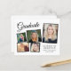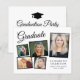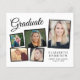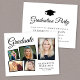 Modern budget-friendly graduation party invitation featuring a 5 photo collage of scattered pictures in black frames, "Graduate" in an elegant script, the grad's name in classic serif typography, their school and class year in simple lettering, and your personalized party details on the back. This budget semi-gloss paper is similar in weight to photo paper. A larger 5x7 traditional card stock version is also available (message us for the link).