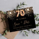 A girly and trendy Save the Date for a 70th birthday party. A black background decorated with faux gold glitter. Templates for a date and name and text. Golden colored letters. The text: Save the Date is written with a large trendy hand lettered style script.